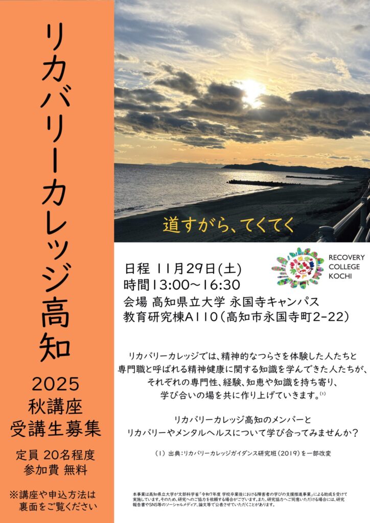 おかげさまで「リカバリーカレッジ高知」は、2022年のスタートから多くの方にご参加いただき、様々な相互の学びと気付きの場を育むことができました。心より感謝申し上げます。
